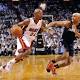 Apr 23, 2014; Miami, FL, USA; Miami Heat guard Ray Allen (34) drives to the basket as Charlotte Bobcats guard Gerald Henderson (9) defends in game two during the first round of the 2014 NBA Playoffs at American Airlines Arena. (Steve Mitchell-USA ...